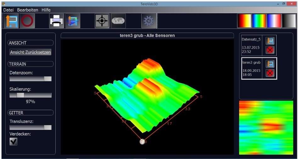 50厘米傳感器可以使用藍牙連接到隨附的平板電腦。如果您使用50厘米傳感器,您可以將平板電腦放在探測器桿的平板電腦支架上。在掃描場(chǎng)時(shí),您會(huì )看到掃描結果會(huì )在顯示屏上顯示。軟件非常人性化且易于使用。