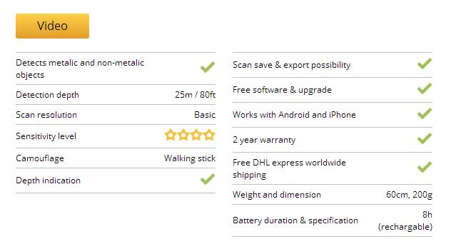 尋寶者探測器這種黃金和金屬探測器提高了靈敏度,因此可以探測到更小或埋在地下更深的物體。它體積小,攜帶方便,集成在碳徒步旅行棒,可擴展,容易使用??砂l(fā)現貴重金屬,如金、銀、銅器以及箱子、密室、空洞和隧道。