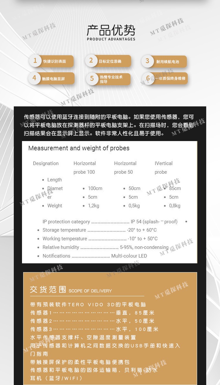 • 配置: 50+85+100厘米探棒