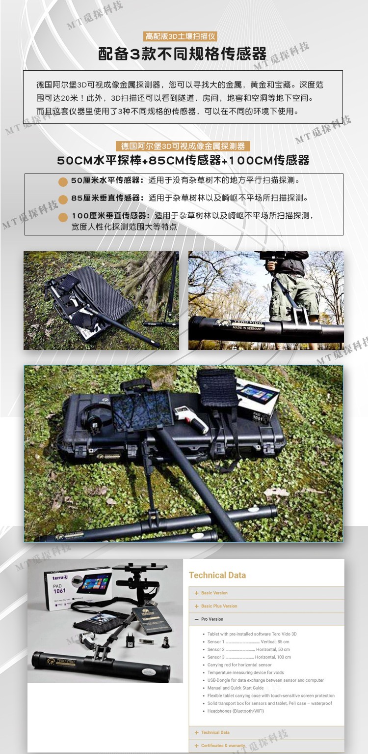 德國阿爾堡3D可視成像金屬探測器,您可以尋找大的金屬,黃金和寶藏。深度范圍可達20米!此外,3D掃描還可以看到隧道,房間,地窖和空洞等地下空間。