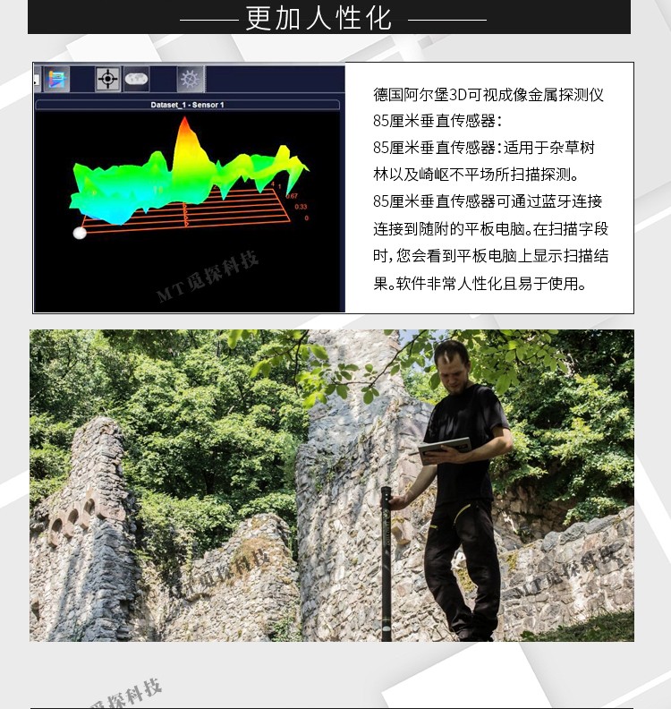 德國阿爾堡3D可視成像金銀銅空洞地下金屬探測器85厘米垂直傳感器