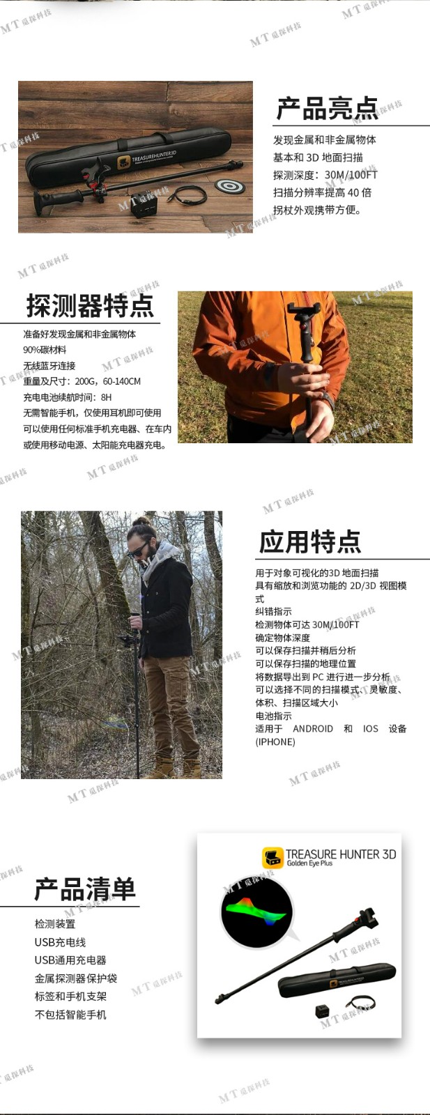 GoldenEye黃金眼無(wú)線(xiàn)手機3D成像可視地面掃描儀拐杖式金屬探測器