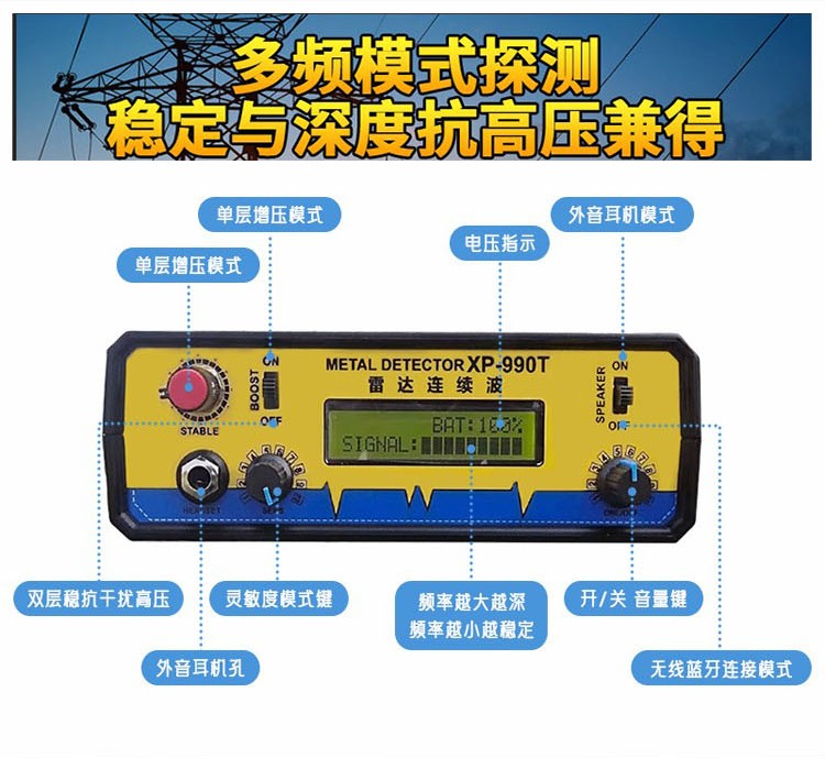 XP990T黑科技脈沖地下金屬探測器連續波立體框大深探寶器