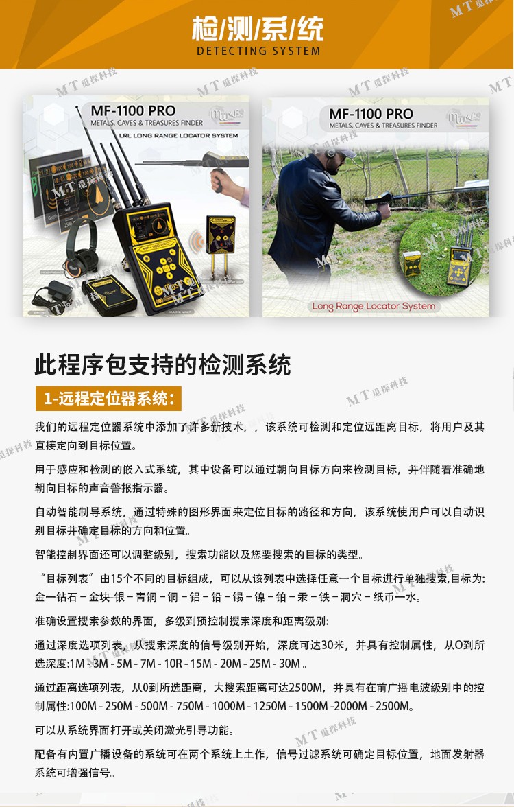 美國MF-1100PRO高配版遠程搜索金鉆石金塊銀青銅銅定位金屬探測器