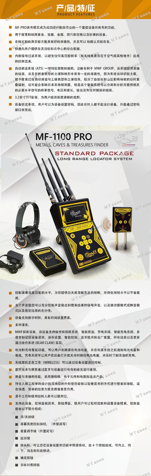 美國MF-1100PRO專(zhuān),業(yè),版黃金銀銅洞穴鈔票遠程掃描定位金屬探測器