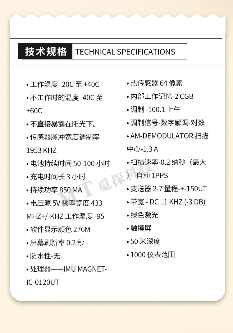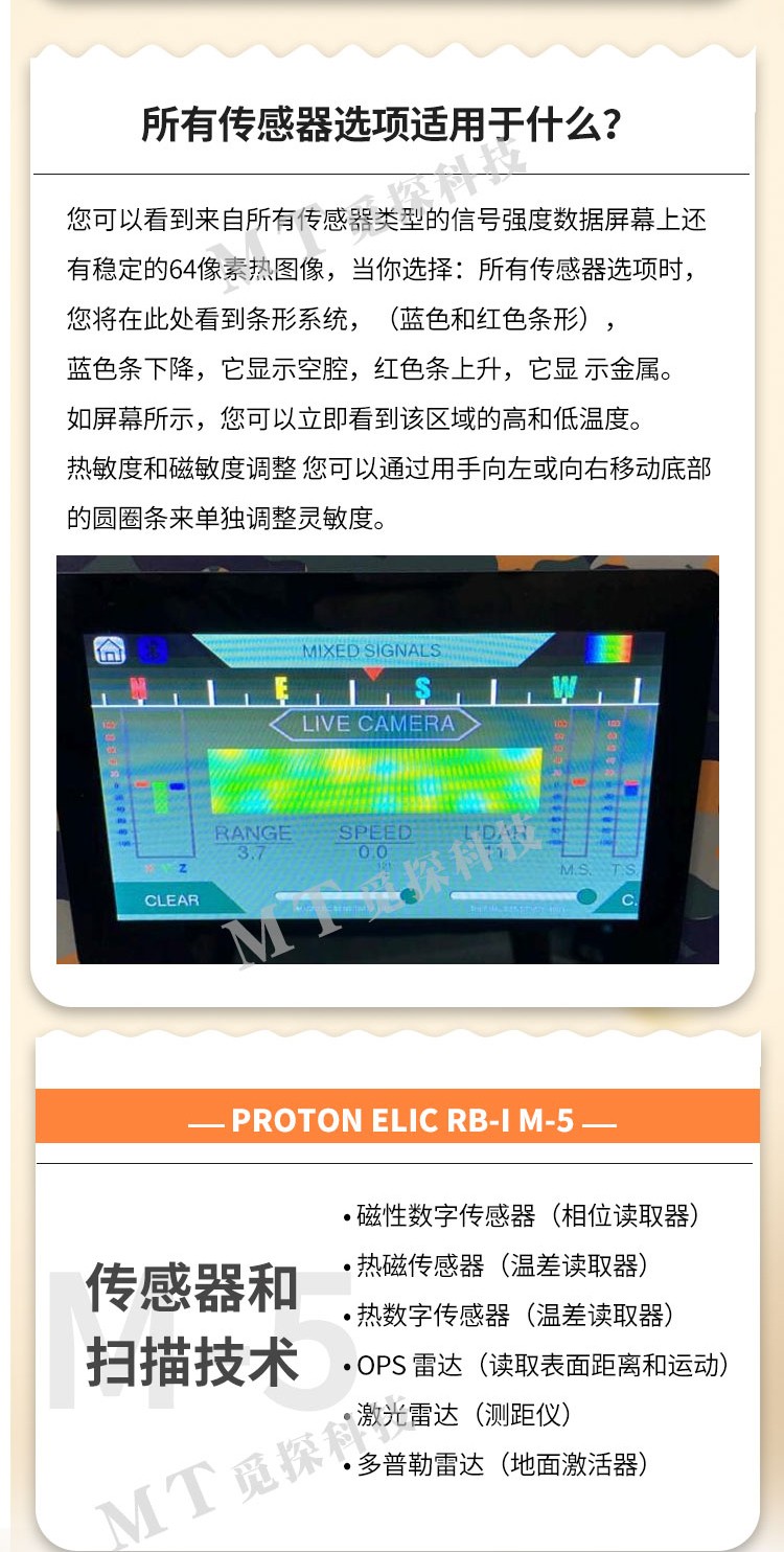 質(zhì)子雷達M5是質(zhì)子雷達系列先進(jìn)的一款遠程追蹤成像探地雷達,自帶顯示屏,多種掃描模式單探頭掃描模式,雙探頭掃描模式,戶(hù)外掃描模式,室內掃描模式,熱掃描模式,磁掃描模式,全地形掃描模式,數字,模擬兩根傳感器,數字,模擬兩個(gè)紅外熱感應模塊,新激光雷達,信號提升,圖像清晰,定位準確。
