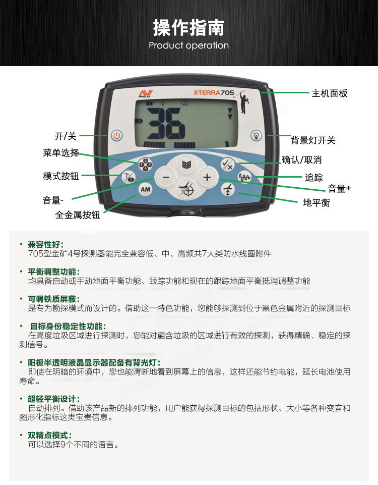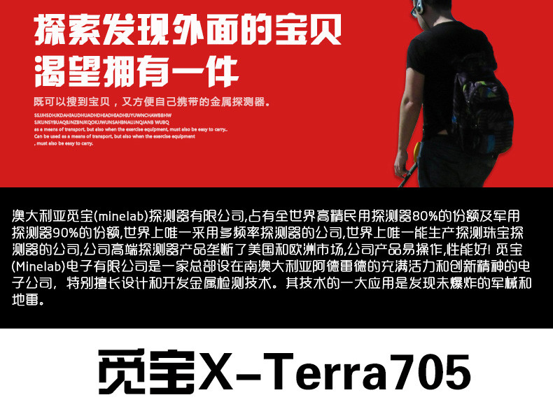 澳大利亞覓寶Minelab X-Terra705 11英寸DD探盤(pán)版地下金屬探測器